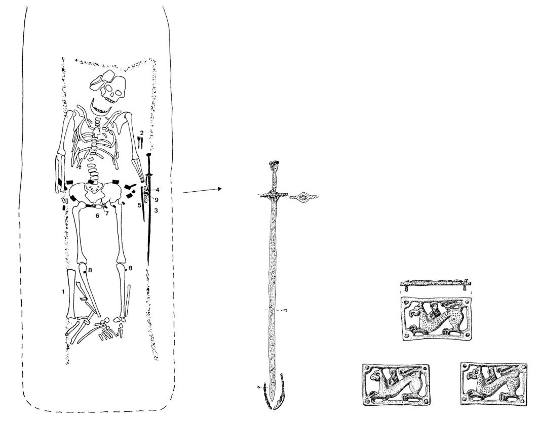 The Leobersdorf cemetery offers a fascinating look at Avar society just after their arrival in the Vienna Basin in the late 6th century. On the Thanados website you can actually find quite a bit of information from the burials at the Leobersdorf site. I’m not sure if every single burial has been featured but for most of these you can actually find quite a bit of information about the grave sizes and contents. For example, from grave 071 (which I picked randomly) I was able to find an image of the skeleton layout and some of the burial goods such as belt fittings and a sabre.