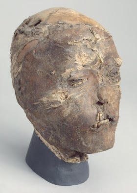 Another Scythian tradition described by Herodotus and other authors that has been verified in the archaeological record is scalping, most famously in the mummified remains of the male from the Pazyryk Barrow 2, the individual on the left on the image below: