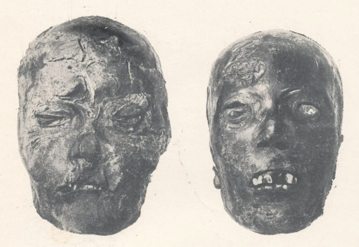 Such traditions were practised throughout the history of societies on the Eurasian steppes. In the middle ages we have two notorious cases of skull cups, fashioned out of the heads of Svyatoslav I and Byzantine emperor Nikephoros I, at the hands of the Pechenegs and Bulgars respectively. However, even in the 20th century you will find something recognizable. In Mongolia during the collapse of the Qin Dynasty, an era marked by notorious figures like Baron von Ungern-Sternberg and Ja Lama, acts reminiscent of the macabre traditions observed on the steppes.