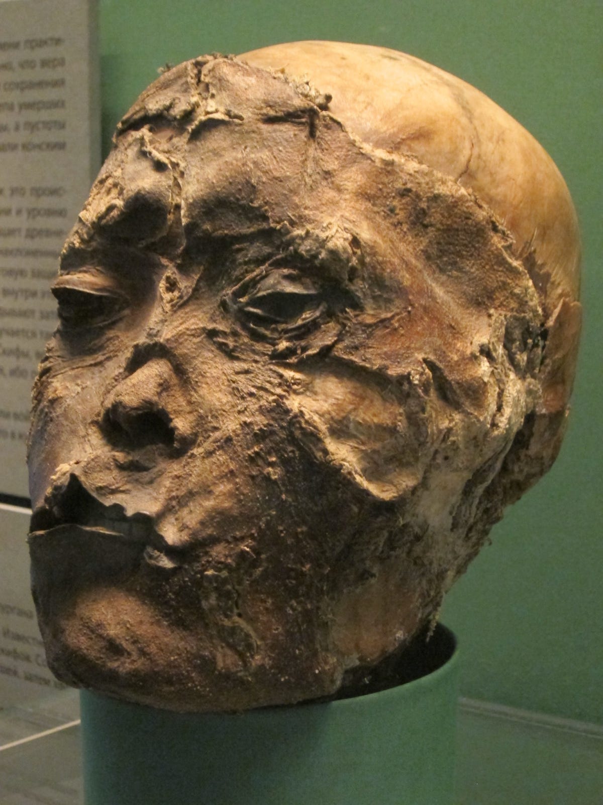 In any case, the unique climatic conditions in the Altai mountains allowed for the preservation of soft tissue, attesting to a tradition very similar to what Herodotus described on the other end of the steppes with the Scythians of the Black Sea. It likely is the case that we have a sizable amount of Scythian period remains of individuals which had been scalped, but we have not noticed it yet as there have been few studies specifically investigating this. One other example had been uncovered after reanalyses of craniums in the Aymyrlyg burial from the Uyuk culture in Tuva [3].